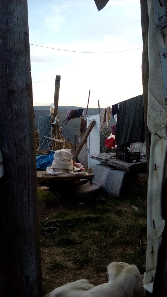 The whole morning we were exploring the village, sometimes saw a kid or heard some noises from people working on their houses, but also discovered a lot of ruins (some were occupied by climbing goats!) and old walls…some more caravans…and of course the already completely rebuilt houses of residents.